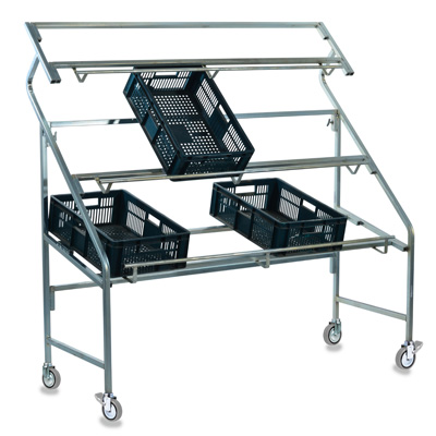 Présentoir cagettes 3 niveaux à roulettes